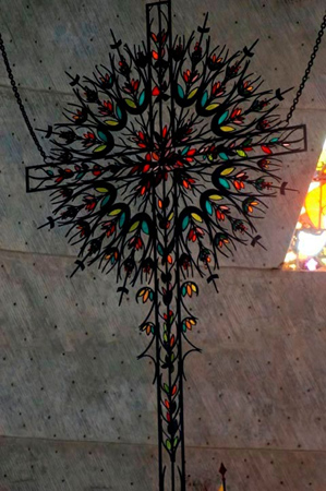 Wrought iron and color glass lamps and Shrine front, Santuario Nacional Nuestra Seņora de Coromoto,